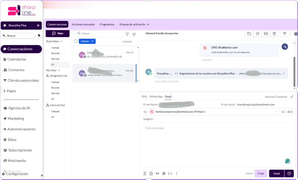 Automatizar no es solo enviar mensajes, es construir relaciones inteligentes. Con Sharpline Plus podés configurar flujos de comunicación que funcionan solos: correos electrónicos personalizados, recordatorios automáticos por WhatsApp, promociones exclusivas por SMS y mucho más.